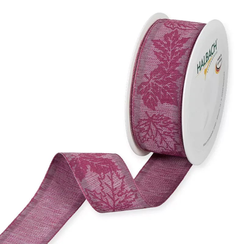 Nastro aut.leaves mm.35 m.15 fucsia